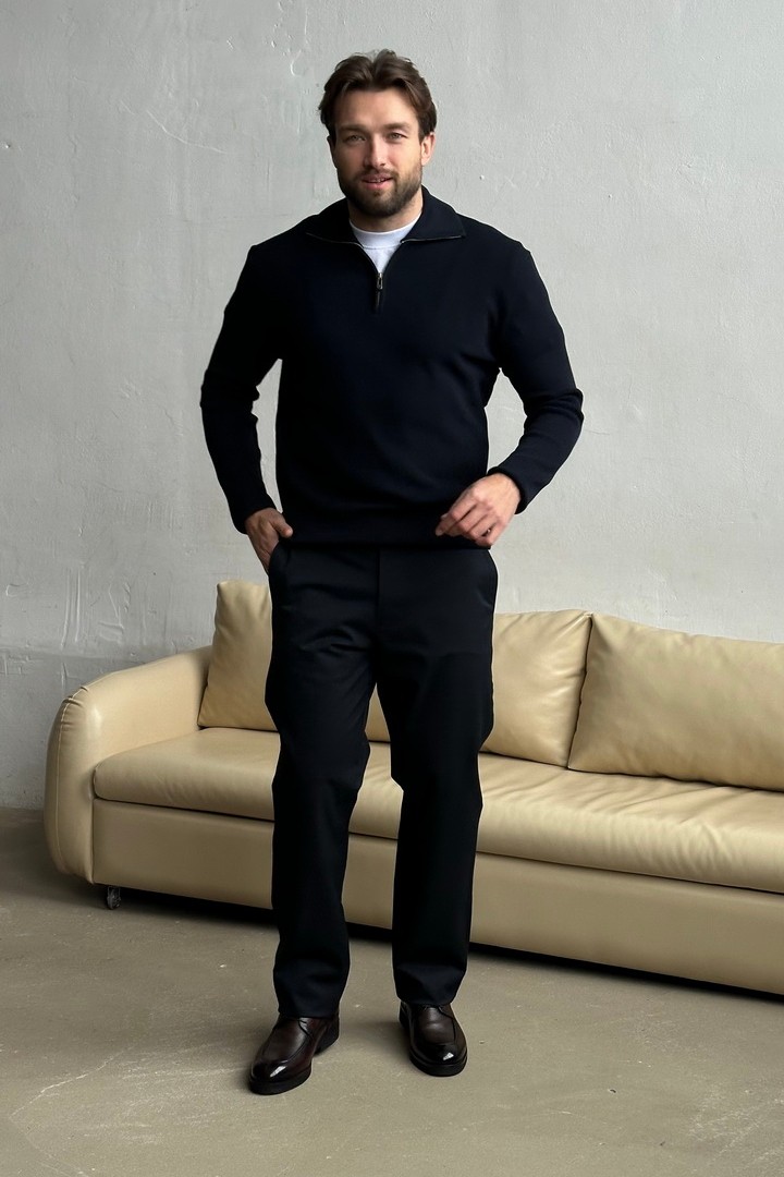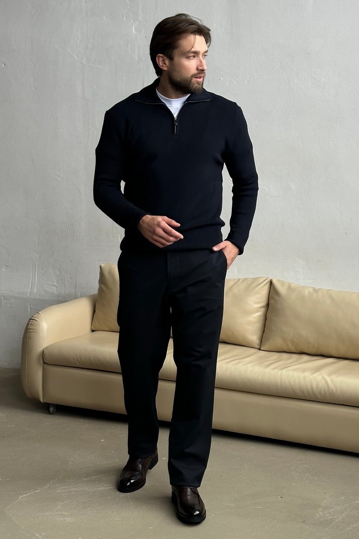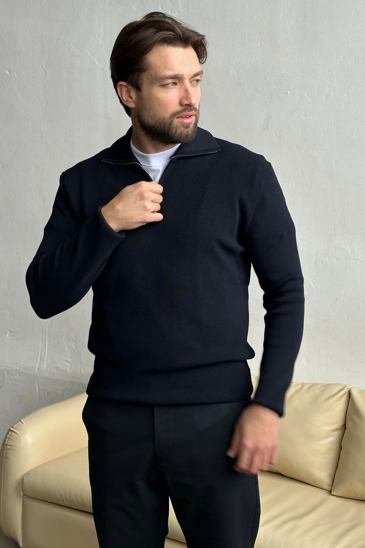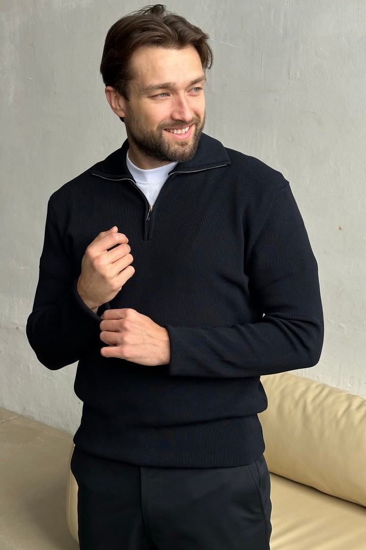Мужской чернильно-синий джемпер с горлом на молнии — отличный выбор для стильного образа. Этот вязаный джемпер изготовлен из высококачественного материала, приятного на ощупь и сохраняющего тепло. Воротник на молнии обеспечивает удобство при одевании и защищает от холода. Чернильно-синий цвет легко сочетается с другими элементами гардероба, например, джинсами, брюками или чиносами. Этот джемпер станет прекрасным дополнением к вашему базовому гардеробу и позволит создавать разнообразные образы для повседневной жизни и особых случаев.