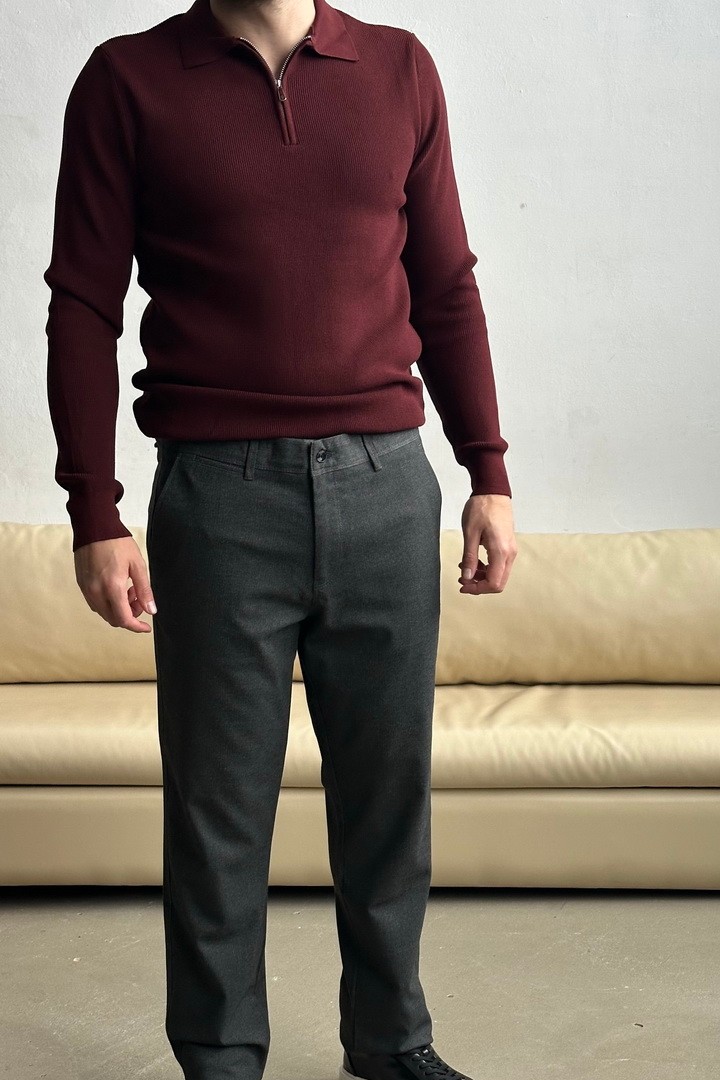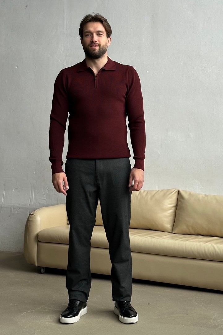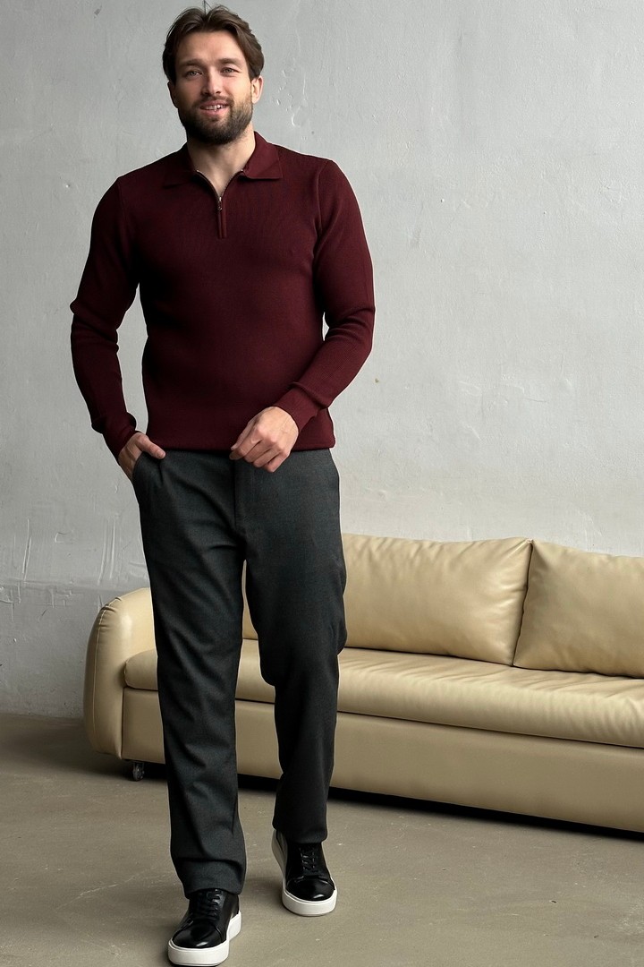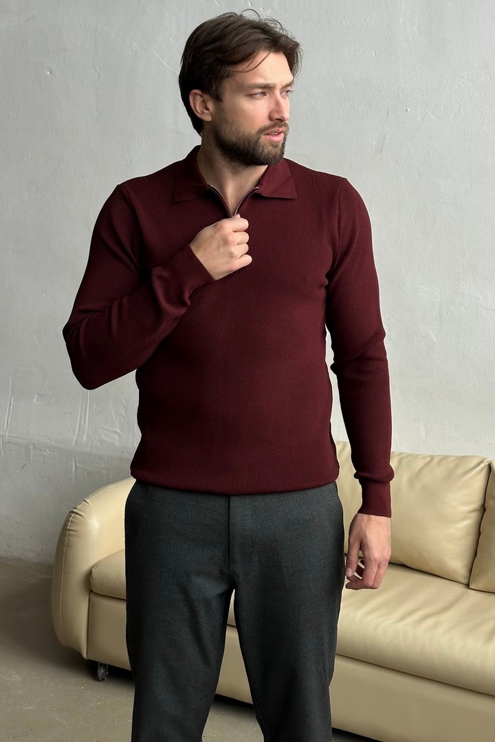 Воротник на замке придаёт модели особый шарм и позволяет легко регулировать образ: от расслабленного до строго‑делового. Глубокий бордовый оттенок смотрится солидно и благородно, добавляя мужественности и стиля.
